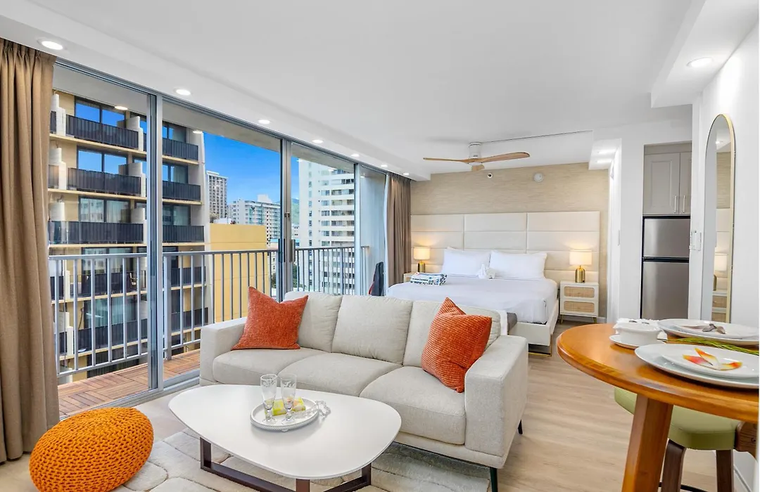 セント オーガスティン カソリック教会が近くに位置しているアパートメントは、ワイキキ ビーチ ウォークから700メートルです。 電子レンジ、コーヒー/紅茶メーカーと冷蔵庫が備わるキチネットもあり、快適な毎日の滞在を楽しめます。